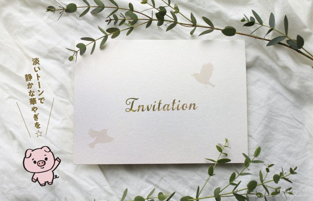 あとは、濃いベタよりも淡いトーン+箔押しなどの組み合わせで、紙の光が生きるので冬にはぴったり。冬の光を意識したデザインにすると、より上品な印象になるわね。