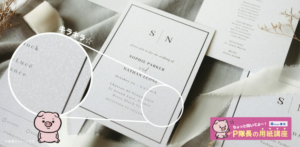 例えば、ブライダルの招待状。「紙そのものが主役」になるデザインにおいて、ペルーラは招待状の印象をぐっと格上げしてくれるわ。